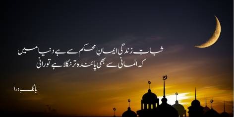 Dunya mein zindagi ki paidari aur baqa sirf pukhta iman se mumkin hai. Is ki bari misal yeh hai ke maadi taur par taqatwar German (Almani) ke muqable mein woh Turk (Toorani) zyada paidar sabit hue jin ke paas iman ki daulat aur aazadi ka jazba tha.
