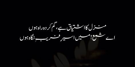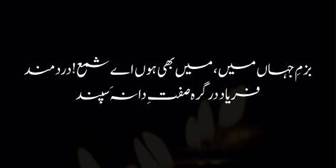 Iqbal shama’ ke jalne ki wajah bayan karte hue kehte hain ke shāyad tū iss gham mein jal rahi hai ke tū haqeeqi roshni ke manbay (yaani Noor-e-Haq ya Mehboob-e-Azal) se door hai aur isi firāq ke dard mein ghul rahi hai.