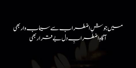 Aur sab se ahem baat yeh hai ke mere dil ko apne iss iztirāb-o-be-chaini ka poori tarah ilm aur āgāhi hai. Yeh fiqrah shā’ir ki kāmil shu’oori tarap aur roohāni jad-o-jehad ko bayan karta hai, jahan dil ko apne dukh aur justuju ka mukammal idrāk hai.
