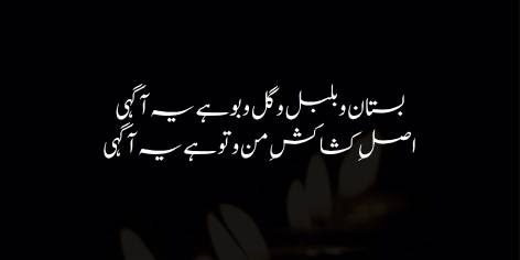 Mazeed bar’ān, Āgāhi (jaan’ne) ka yeh shu’oor hi woh buniyād hai jiski wajah se phoolon mein khushboo ka anasir barqaraar hai aur sharāb mein nashah qā’im hai.