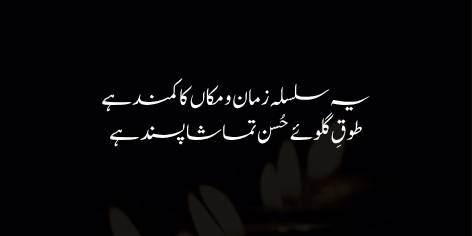 Iqbal kehte hain ke Zamān-o-Makān (waqt aur jagah) ka tasalsul (Silsilah) insān ki zindagi (Hayāt) ke ird gird ek hisār (ek chārdīwāri, ek qaid khānah) ki tarah hai.