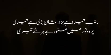 Isi azmat ki wajah se tere dāman mein jo bhi chhotī ya baṛi cheez maujood hai, woh ek noor ke pardey (roshan hijāb) mein chhupi hui hai”.