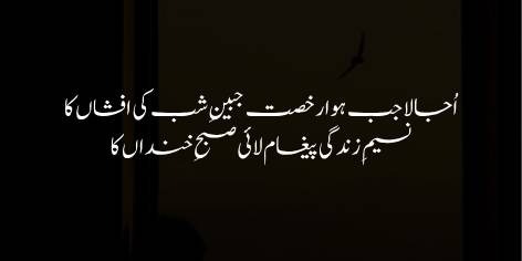 Sher ka Mafhoom: Iqbal kehte hain ke jab rāt ka waqt khatam hua aur āsmān par sitāre ghuroob ho gaye, to hansti khelti zindagi (ya’ni subah ki tāzgi aur shādābi) Sahar ka Paighām (Paighām-e-Sahar) le kar (dunya mein) namoodār ho gayi (zāhir ho gayi).