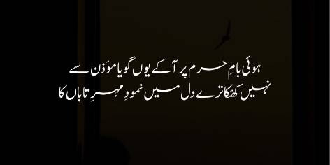 Mazeed yeh ke, uss ne aish-o-ishrat ke gharōñ (Ishrat Gāhon) mein rāt bhar roshan rehne waali sham’ōñ ko bhi bujhā diya.