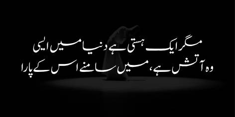“Yehi Hasti (Ishq) insaan ke dil mein ek lehar ki tarah musalsal rawāñ dawāñ (Maujzan) rehta hai”, aur “uss hasti (Ishq) ka wajood (insaan ke liye) talkh (mushkilāt se pur) hone ke bāwajood, ek khushguwār aur meeṭhi haisiyat rakhta hai”.