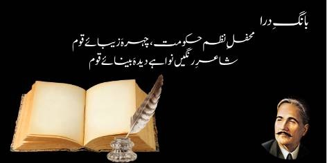 Iqbāl qaum ke muḳhtalif ṭabqōñ ke kirdār aur phir shā’ir ke buland maqām kī waẓāḥat karte hue farmāte hain ke ḥukmrān ṭabqa, ya’nī jo log naẓm-o-nasaq ke zimmedār hote hue niẓām-e-ḥukūmat chalāte hain, woh qaum ke chehre par ḥusn-o-khūbsūratī ke maẓhar hote hain.