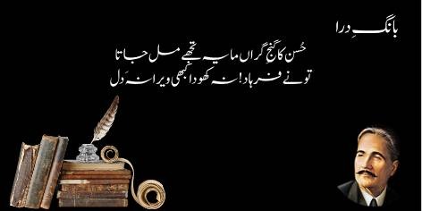 Allama Iqbal āshiq dil kī rūḥānī qadr bayān karte hain: “Aur ek aisā dil jo ishq (ḥaqīqī muḥabbat) kī sharāb se mukammal taur par labrez (bharā) ho, zarā sōchiye toh sahī ke us kī qīmat aur qadr-o-manzilat kya ho gi.