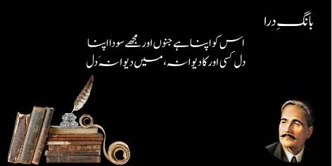 Allama Iqbal ke is she’r mein taġhazzul (muḥabbat-o-wāraftagī kā rang) apnī pūrī intihā aur kamāl par pahuñchā huā hai. Woh laṭīf andāz mein farmāte hain: “Dil aur maiñ (shā’ir) amalī sataḥ par donōñ hī Majnūñ (ishq mein mubtalā) aur saudā’ī hain (ya’nī donōñ hī ishq mein wārafta hain ).
