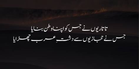 Yahān tak ke woh log jo use ārzī qiyām-gāh (temporary residence) samajhte the, us kī azmat aur jamāl se muta’assir ho kar unhon ne mustaqil taur par ise apnā watan banā kar yahīn ābād ho ga’e.