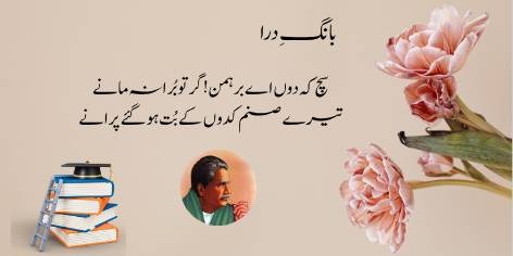 (اقبال برہمن سے مخاطب ہوتے ہوئے کہتے ہیں:) “اِنہی پرستش کے فرسودہ طریقوں اور بتوں نے تمہیں اپنے ہی جیسے دوسرے انسانوں سے دشمنی رکھنا سکھایا ہے۔”