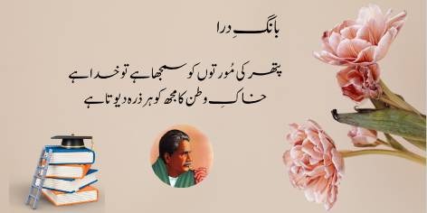 “(Yeh she’r Allama Iqbal kī shadeed watan parastī ko ẓāhir kartā hai, jahāñ woh watan kī miṭṭī ko buttōñ se zyādah muqaddas qarār dete hain).
