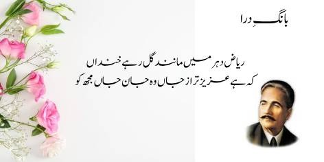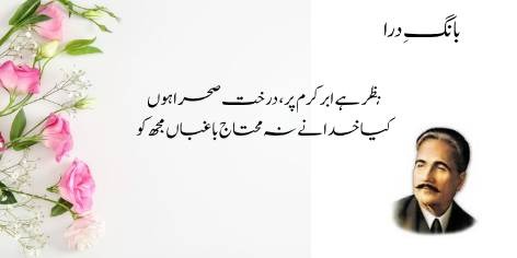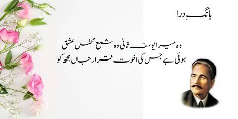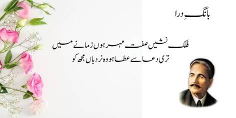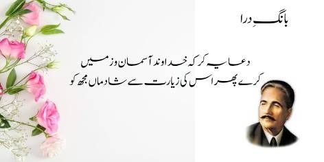 Mere dil kī kalī khul kar ek pūrā phūl ban jāye! Aur musāfir (ya’nī Iqbāl) kī yeh tamām iltijā’ēñ aur darkhwāstēñ qabūl hō jā’ē.