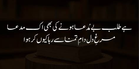 یہ عبارت انسانی دل کی آرزو مندی کے حوالے سے ایک گہرا فلسفیانہ تضاد بیان کرتی ہے۔ شاعر کہتے ہیں کہ انسان کا دِل تو ہمیشہ سے ہی آرزوؤں اور تمناؤں کا مسکن (جگہ) رہا ہے۔