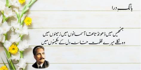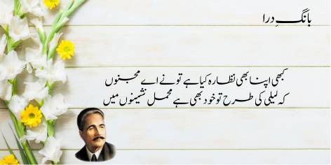 Mere liye yeh mumkin hī nahīn hai ke maiñ in lōgōñ kō burā samajhūñ jo merī shā’irī yā mere naẓariyāt par tanqīd (nukta chīnī) karte hain. Ai Iqbāl! Is kī wajah yeh hai ke maiñ khud bhī toh apne āp par nukta chīnī karne wālōñ (apne nāqadīn) mein shāmil hūñ.