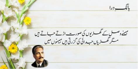 Jab Maḥbūb se milan (waṣl) ke mahīne hōte hain toh woh waqt aise tezī se guzar jātā hai jaise chand ghaṛiyāñ hōñ. Lekin is ke bar-aks, judā’ī (hijr) ke chand lamhe aur ghaṛiyāñ bhī itnī āhista guzartī hain jaise ek ek din mahīne kī tarah bhārī hō. Yeh ‘āshiq ke dil kī bē-qarārī aur waqt ke eḥsās kī nafsiyāt kā khūbsūrat bayān hai.