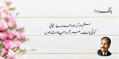 Chāhe āp kī taraf se mujhe ẓulm aur muṣībatēñ milēñ, yā phir āp pardah haṭā kar dīdār karwāne kā wā‘dah (wā‘dah-e-bē-ḥijābī) karēñ— in dōnōñ mein se koī bhī ḥālat hō— mujhe toh bas ek aisī kaifiyat yā wāqi‘a chāhiye jo mere andar ke ṣabr, istiqlāl aur bardāsht kō khūb āzmāye. ‘Āshiq kī aṣl pehchān yeh hai ke woh har ḥāl (chāhe woh sitam hō yā wiṣāl) mein apne jazbe kī gahrā’ī aur istiqlāmat kō parkhnā chāhtā hai.