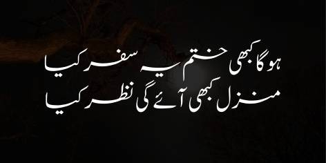 Is sher mein sitāre (talāsh karne wāle insān) apnī anthak jad-o-jehad kī intihā aur manzil ke bāre mein be-yaqīnī (uncertainty about the end and destination of their endless struggle) kā izhār karte hain. Woh pūchhte hain ke ākhir itnā to hameñ patā chale ke yeh safar kabhī aur kisī marhale par jā kar khatm bhī ho gā, aur kabhī ham apnī manzil-e-maqsood ko bhī dekh saken ge yā nahīn (will we ever see our ultimate destination).