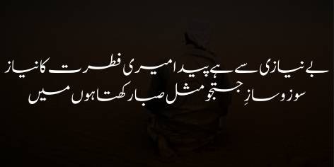 Dar-asal, yeh be-chainī shā’ir ke liye mazammat (condemnation) kā sabab nahīn balkay talāsh aur irtiqā’ (search and evolution) kā muharrik (driving force) hai. Yeh dā’imī justajoo (eternal quest) hī us kī rūhānī zindagī kā markaz hai, jo use kisī ek maqām par ṭheharne nahīn detī aur musalsal taraqqī par āmādah rakhtī hai.