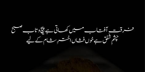 Is sher mein Iqbāl ishq aur judā’ī ke āfāqī dard (universal pain of love and separation) ko bayān karne ke liye fitrī mazāhir kā sahārā lete hain. Woh kehte hain ke sahar (dawn) bhī āftāb kī judā’ī mein be-chain-o-muztarib rehtī hai (it remains restless and agitated in separation from the sun, meaning it anxiously waits for the sun to rise) aur chashm-e-shafaq (the redness of the sky at dusk, which is like an eye) sitarah-e-shām ke firāq mein khoon ke āñsū bahātī hai (sheds tears of blood in the separation of the evening star).