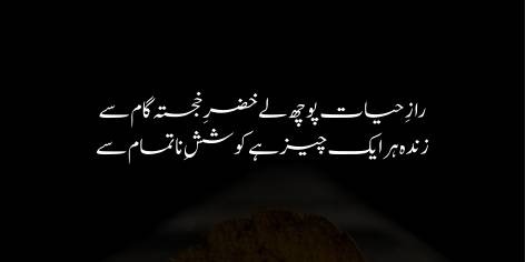 Is sher mein shā’ir rāz hāye zindagī (deep secrets of life) jānne kā ‘amalī rāstā (practical path) batāte hain. Woh kehte hain ke is sūrat mein agar koī rāz hāye zindagī se āshnā honā chāhe to Hazrat Khizr se rujoo’ kare (because Hazrat Khizr possesses eternal life and guidance).