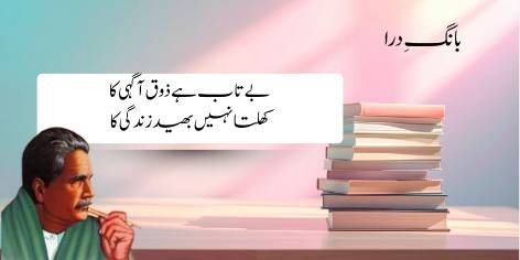 Insān ke andar ḥaqīqī ‘ilm aur jānne kī shadīd khwāhish (zauq-e-āgahī) bē-chainī paidā kartī hai aur woh har waqt muẓṭarib rehtā hai, magar afsōs ke us par zindagī kā aṣl bhēd aur rāz kabhī nahīn khultā.