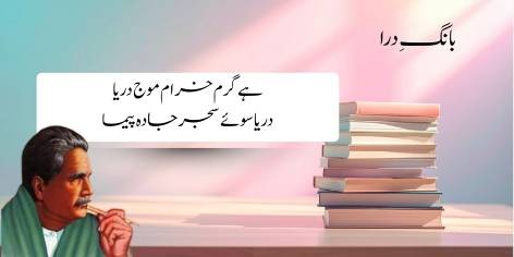 دریا کی موج کتنے جوش اور لگن سے آگے بڑھ رہی ہے، اور خود دریا بھی اپنی منزل (سمندر) کی طرف اپنا راستہ طے کر رہا ہے۔ (یعنی فطرت میں ہر شے مصروفِ عمل ہے)۔