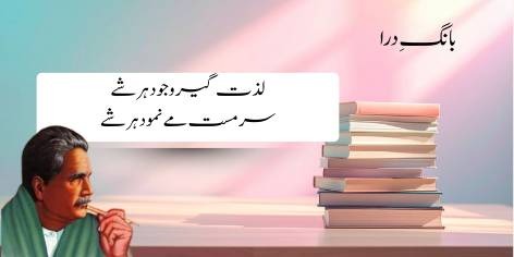 Is kā’ināt mein ḥairat hī har chīz kī ibtidā’ hai aur ḥairat par hī har chīz khatam hō jātī hai. Yeh duniyā toh ā’īnōñ kā ek ghar hai, aur is ghar mein ḥairat zadah hō kar dekhne ke siwā aur rakhā hī kyā hai.