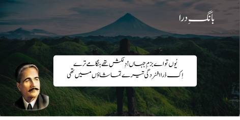 Ai duniyā kī mehfil! Yaqīnan tumhāre sāre hangāme aur raunaqeñ dil kō khīñchne wālī (dilkash) thīñ, magar phir bhī tumhārī har tafreeḥ aur manzar mein kuch na kuch udāsī (afsurdagī) zarūr shāmil thī.