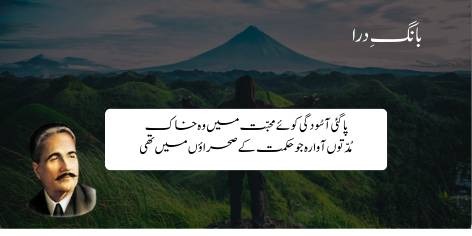 Wōh insān (khāk), jo ek ṭawīl arse tak ‘aql aur falsafe ke vīrānōñ (ḥikmat ke ṣaḥrā’ōñ) mein bhaṭak rahā thā, ākhirkār us kō muḥabbat kī galī (kū-e-muḥabbat) mein jā kar hī sukūn aur iṭmīnān (āsūdgī) mil gaya.