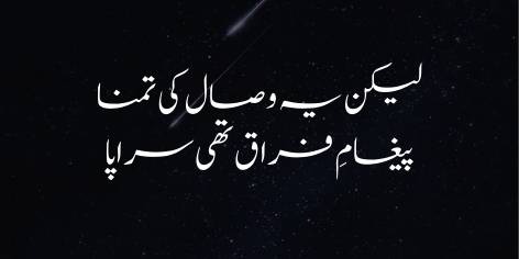یہ بیان فطرت کے اصولِ تغیر کو تقویت دیتا ہے۔ شاعر کہتے ہیں کہ “لیکن ہوا یوں کہ دونوں ستاروں کے مابین مستقل وصال کی خواہش لمحے بھر میں فراق اور جدائی کا پیغام بن کر رہ گئی”۔ یعنی ستاروں نے جو دائمی اتحاد اور قربت کی آرزو کی تھی، وہ دنیا کے عارضی ہونے کے اصول کی وجہ سے پوری نہ ہو سکی۔ یہ فقرہ فنا اور جدائی کے اٹل مقدر کو بیان کرتا ہے جو کائنات کی ہر شے کا حصہ ہے، اور ان کی تمنا کے باوجود، وہ دوبارہ ایک دوسرے سے دور ہو گئے۔
