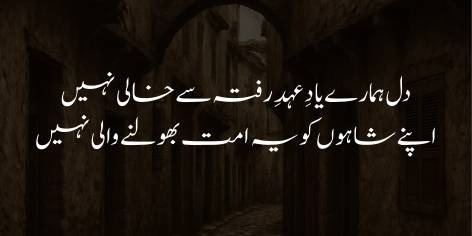 Chunānche haqeeqat yeh hai ke hamāre dil apne shāndār māzi ki yādōn se kabhi bhi khāli nahīn ho sakte, aur na hi yeh ummat (qaum) apne azeem-ul-martabat bādshāhōn aur rehnāma’ōn ko farāmosh kar sakti hai. (Ya’ni māzi ki yādēñ hamesha zinda rahēñgī.)