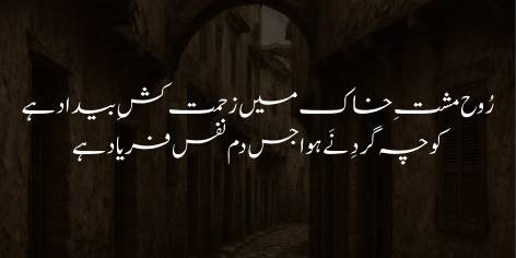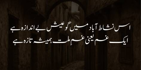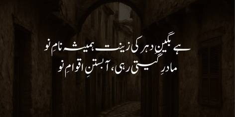 Yeh haqeeqat hai ke iss dunyā mein be-andāza aish-o-nishāṭ (khushiyāñ aur rāhatēñ) maujood hain, iss ke bāwajood millat (qaum) ki barbādi ka ek aisā gehrā gham hai jo dil mein hamesha tāza rehtā hai aur kisi sūrat kam nahīn hotā.