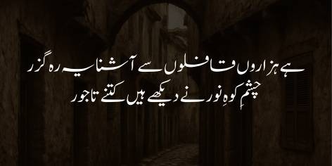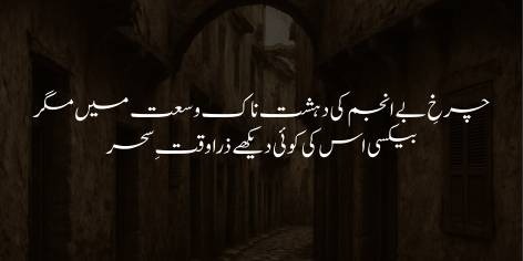 Yeh sitāra agarche apni manzil ki jānib mehw-e-safar hai, lekin uss ke bāwajood woh āsmān ki buland fizā’ōn se zameen par barpā hone wāle tamām baṛe baṛe inqilābāt aur tabdeeliyōn ka khāmoshi se nazzāra bhi kar rahā hai.