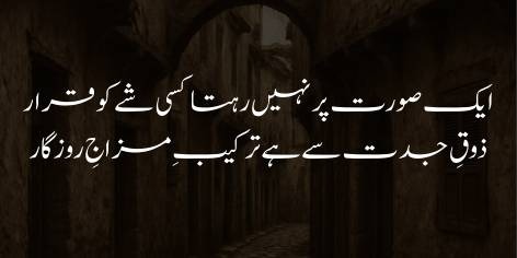 Amr-e-Wāqi’a (haqeeqat) yeh hai ke iss kā’ināt mein koi bhi shai mustaqil taur par ek hi shakal ya ek hi andāz se baqarār nahīn rehti, balkeh musalsal tabdeeli aur taghayyur ka shikaar rehti hai.