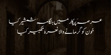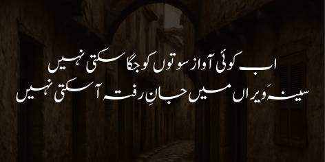 Mazeed yeh ke, na to dunyā ke museebat zadgān ki āhēñ aur faryādēñ un so’e hue hukmarānōn ko mutaharrik kar sakti hain, aur na hi maidān-e-jang mein talwār chalaane ke hangāme aur wahāñ buland hone wāle Takbīr ke pur josh na’are un bahādurōn ko dobāra bedār kar sakte hain.