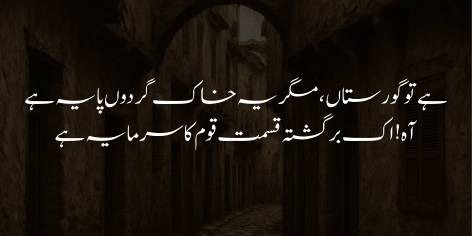 Sawāl yeh hai ke kyā un azeem shehanshāhōn ki azmat ka nateeja yehi niklanā thā, jinke tarz-e-hukūmat ko dekh kar zawāl ka tasawwur bhi nahīn kiyā jā saktā thā?