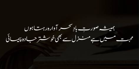 Kyūnke mere nazdeek manzil-e-muhabbat ki intehā tak pahuñch jāne se kahīn zyādah behtar, uss ki talāsh mein sargardāñ rehnā hai.