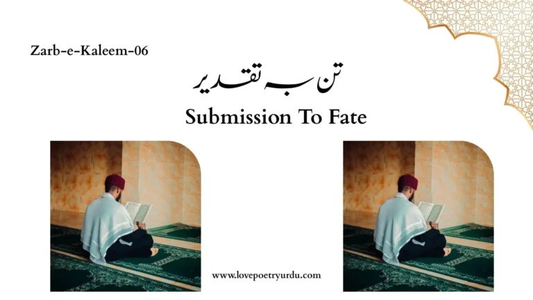 Tan-Ba-Taqdeer Submission To Fate اسی قرآں میں ہے اب ترکِ جہاں کی تعلیم جس نے مومن کو بنایا مہ و پرویں کا امیر Issi Quran Mein Hai Ab Tark-e-Jahan Ki Taleem Jis Ne Momin Ko Banaya Meh-o-Parveen Ka Ameer The…