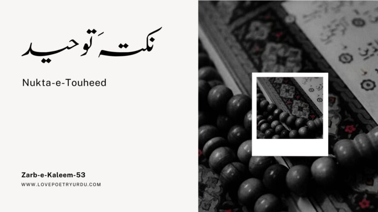 Nukta-e-Touheed Unity Of God Byan Mein Nukta-e-Touheed Aa To Sakta Hai Tere Damagh Mein Butkhana Ho To Kya Kahiye بیاں میں نکتہَ توحید آ تو سکتا ہے ترے دماغ میں بُت خانہ ہو تو کیا کہیے The subtle point in…