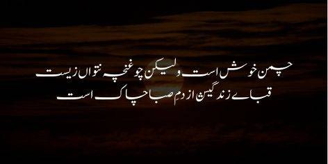 Chaman khush ast walaykin chu ghuncha natwan zeest