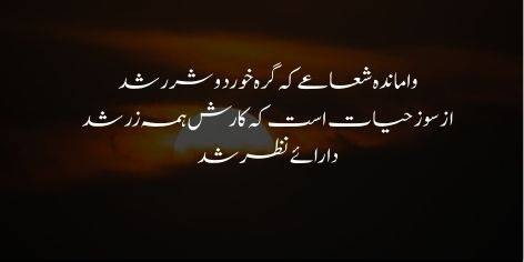 Peeche reh jane wali ek kiran ne apne aap ko girah lagayi aur chingari ban gayi. Yeh zindagi ke soz ka faizan hai ke us ka kaam sona ban gaya aur wo sahib-e-nazar ho gayi.