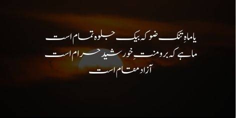 Ya yeh pal bhar chamakne wala chand hai jo ek hi jalwe mein mukammal ho jata hai. Yeh aisa chand hai jis par sooraj ka ehsan lena haram hai aur yeh muqam ki qaid se azad hai.