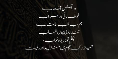 In the scorching heat of the sun, you dive through the mirage. In the moonlit night as well, you rush like a shooting star. Your eyes have seen no sleep! Step more swiftly, for our destination is not far.