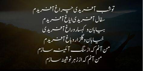 من آنم کہ از زہر نوشینہ سازم