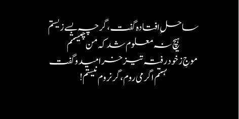 ایک سنسان اور پڑے ہوئے ساحل نے کہا کہ اگرچہ میں ایک طویل مدت تک جیتا رہا ہوں، لیکن مجھے آج تک یہ معلوم نہ ہو سکا کہ میں کیا ہوں اور میری حقیقت کیا ہے۔ ایک بے خود اور متوالی لہر تیزی سے چلی اور کہنے لگی: اگر میں چلتی رہوں (رواں دواں رہوں) تو میرا وجود ہے، اور اگر میں رک جاؤں تو میں کچھ بھی نہیں ہوں!
