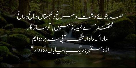 Sad jooye dasht o murgh o kohistan o bagh o ragh