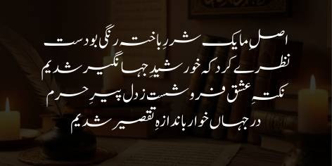 ہماری حقیقت ایک ایسی چنگاری کی تھی جس کا رنگ اڑ چکا ہو اور جس میں کوئی تپش نہ ہو، لیکن حضور ﷺ کی ایک نگاہِ کرم نے ہمیں وہ جلا بخشی کہ ہم پوری دنیا پر چھا جانے والے سورج بن گئے۔ مگر افسوس کہ جب ہمارے مذہبی پیشواؤں (پیرِ حرم) نے ہمارے دلوں سے اس سچے عشقِ رسول ﷺ کی تڑپ کو نکال دیا، تو ہم اپنی کوتاہیوں اور گناہوں کے باعث پوری دنیا میں ذلیل و خوار ہو کر رہ گئے۔