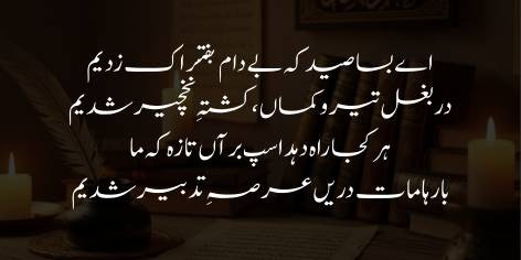 اے بسا صید کہ بے دام بفتراک زدیم