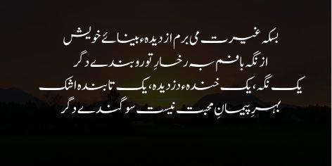 Yak nigah, yak khanda-e-duzdida, yak tabinda ashk