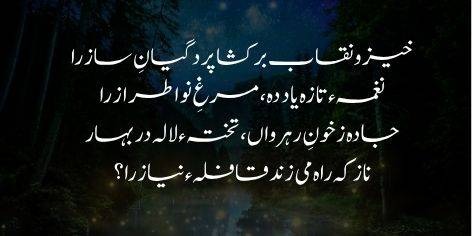 (Payam-e-Mashriq-065) Mai-e-Baqi – Ghazal 6: Khaiz Wa Naqab Barkasha, Pardgyan Saaz Ra